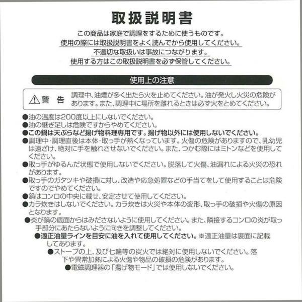 内容 深型だから油が飛び散りにくい。