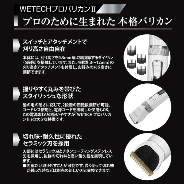 WETECH プロバリカン2 WJ-7008(セラミック刃 電源接続/コードレス充電池の2方式対応 散髪)