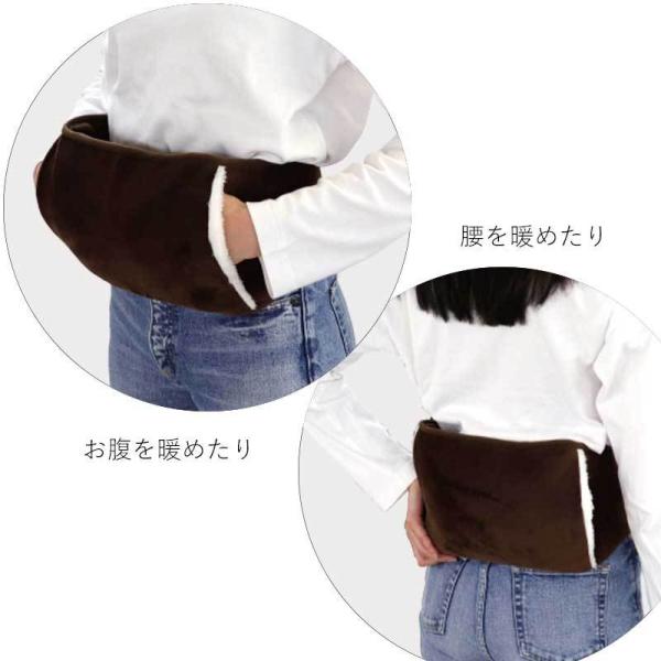 別売の「電気でポカポカ湯たんぽ」を入れれば、腰やお腹のあたために最適!