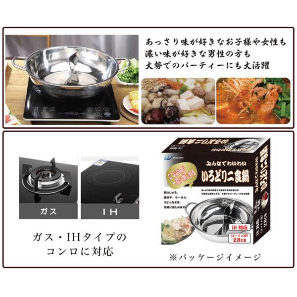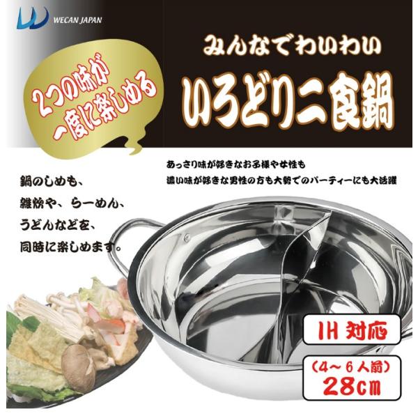 みんなでわいわい いろどり二食鍋 WJ-9068 直径28cm×深さ7cm ガスコンロ・直火&IH対応 2仕切鍋 仕切り鍋 ステンレス製 軽量 軽い