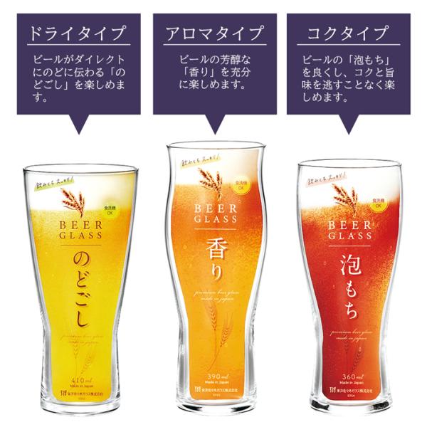 ■商品内容:のどごしグラスφ77×163mm(410ml)、香りグラスφ64×173mm(390ml)、泡もちグラスφ67×160mm(360ml)