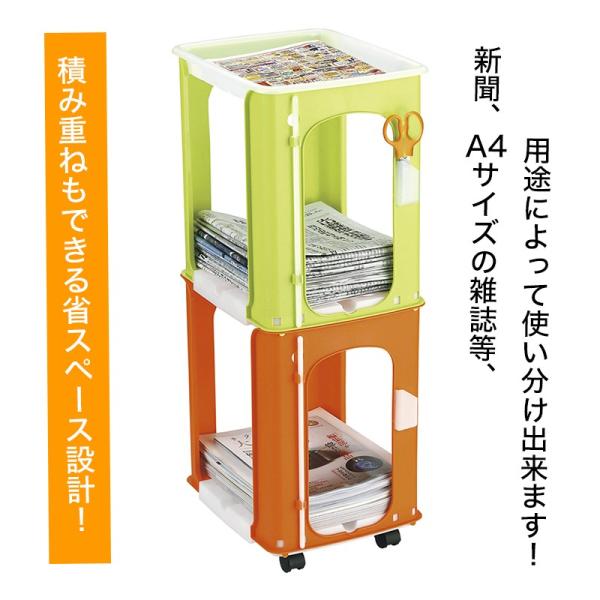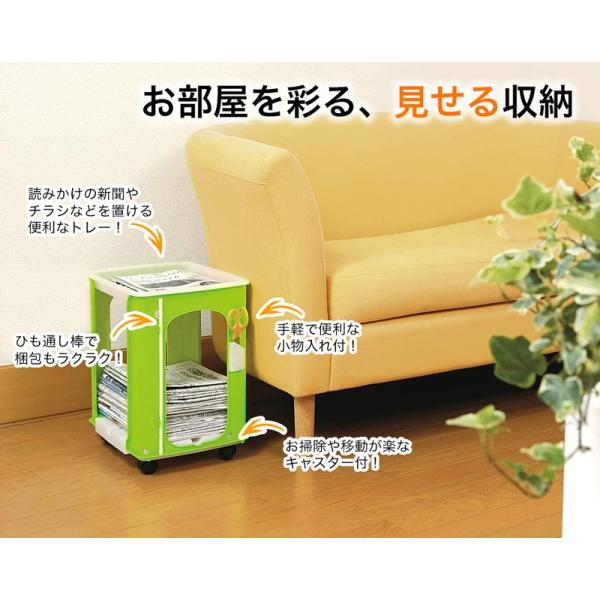 新聞 ストッカー ラック からふるしんぶん楽っく プラス1 便利なトレー付き 新聞紙 雑誌 収納 キャスター付き ハサミ小物入れ付き ひも通し棒付き