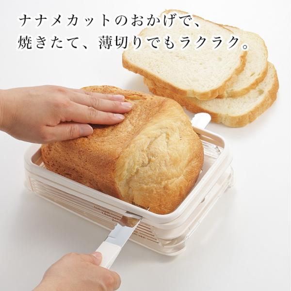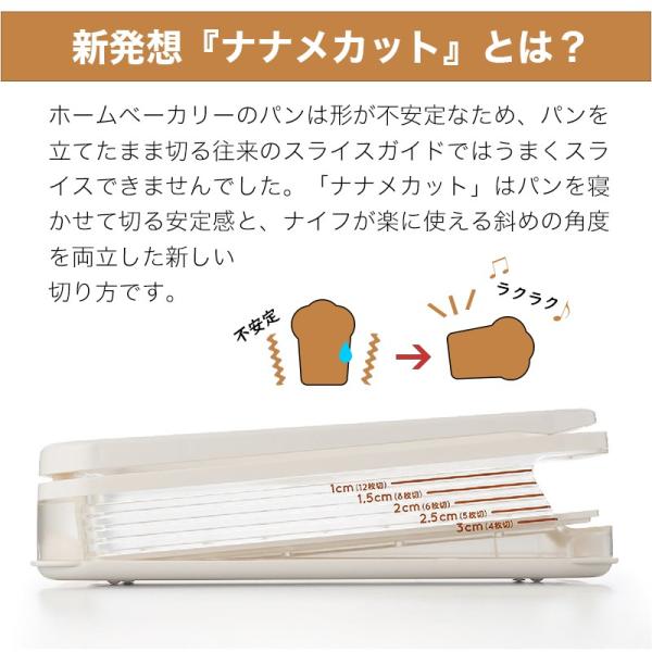 新発想『ナナメカット』で、焼きたてパンを最後の一枚まで上手にスライスできます。