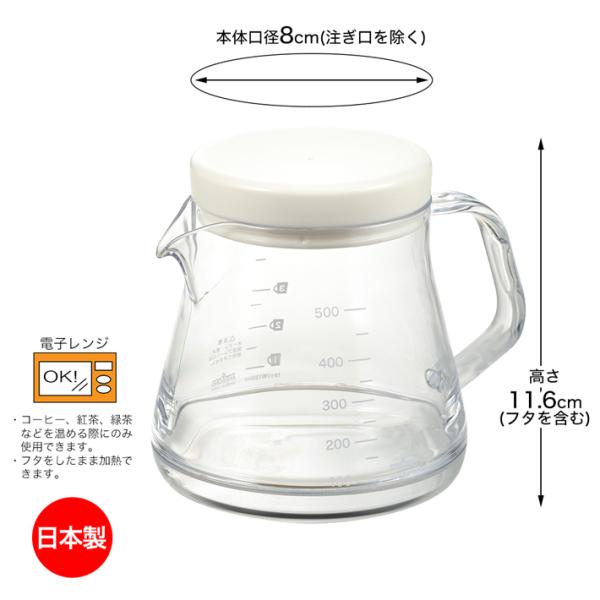 曙産業 コーヒーサーバー ストロン 500 ホワイト TW-3731 トライタン樹脂製 割れない 割れにくい 丈夫 珈琲 ポット 軽量 クリア 透明 電子レンジ可 食洗機可