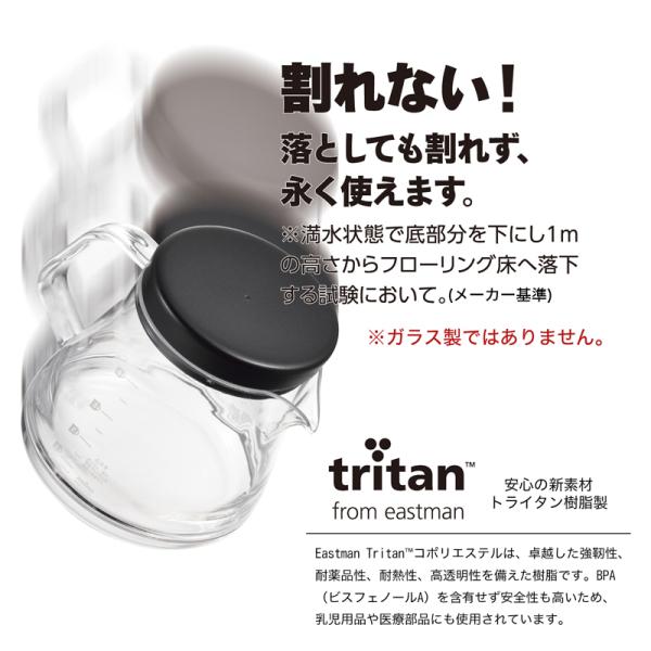 ガラスのように透明で割れない、丈夫な扱いやすいトライタン製のコーヒーサーバーです。