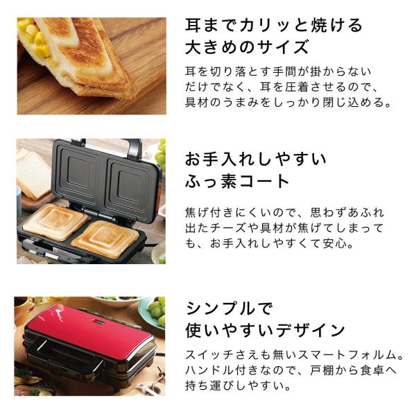 カリーノ 耳までおまかせ ホットサンド (ホットサンドメーカー ダブル レッド 食パン 朝食 レシピ付き)