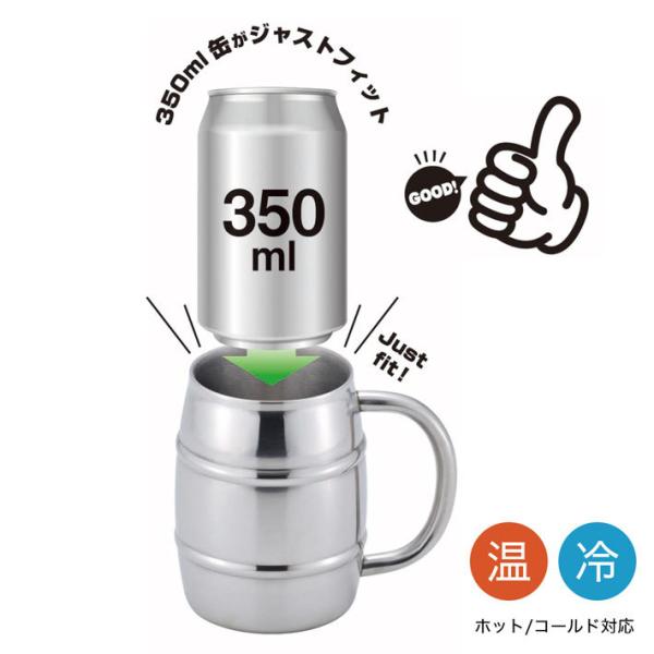 真空二重 樽缶ジョッキ350ml用 TJ-35 ステンレス 保温 保冷 結露防止 ハイボール 缶ビール 生ジョッキ缶 ジョッキ缶 フルオープン缶 保冷缶ホルダー 取っ手