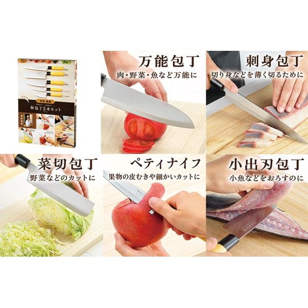 鉄人中村孝明 和包丁 5本セット(木箱入) NKL-01 ステンレス刃物鋼 両刃 刺身包丁 菜切包丁 万能包丁 ペティナイフ 小出刃包丁
