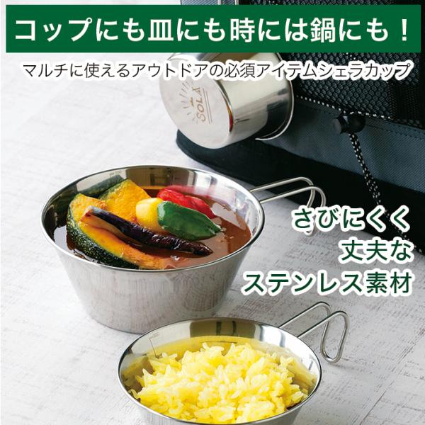 SOLA シェラカップ 3pcs 直火対応 皿 プレート コップ 鍋 セット スタッキング 重ね 食器 コンパクト 収納 持ち運び ステンレス 軽い 軽量 キャンプ アウトドア
