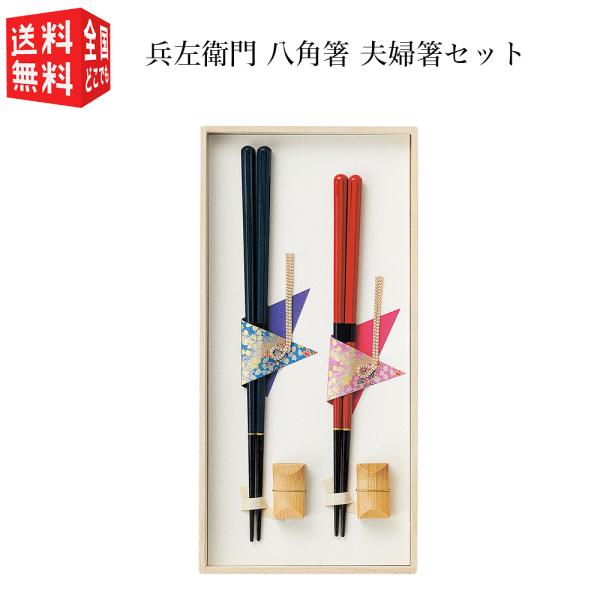 兵左衛門 八角箸 夫婦箸セット 104505 箸置き付 木箱入 天然木 2組 ペア セット 大人 日本製 ギフト プレゼント
