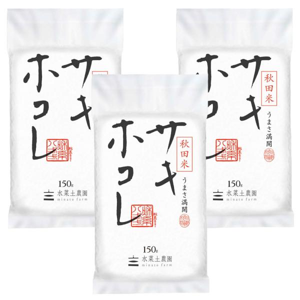 【秋田限定デザイン】米 お米 あきたこまち サキホコレ つきあかり 300g (2合)× 3袋セット 秋田県産米 食べ比べ 真空パック 引っ越し 挨拶 粗品 景品