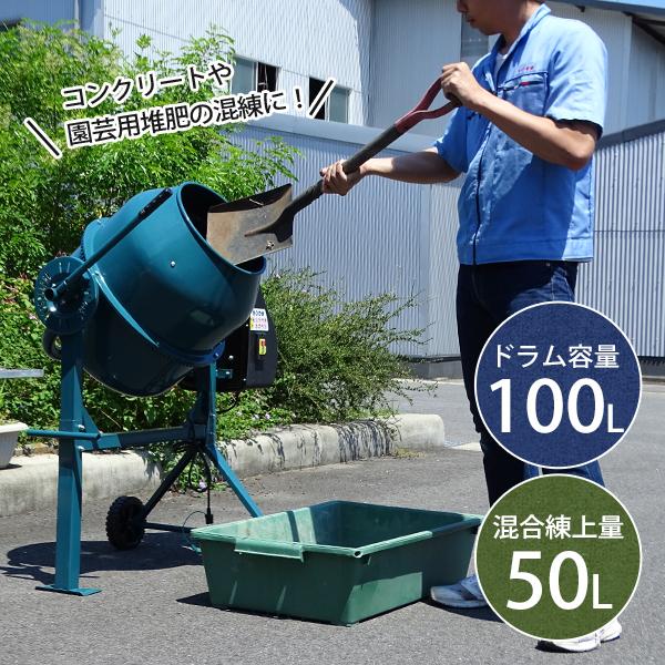 コンクリート・モルタルの混練や園芸用の堆肥・肥料の混練用途にも最適な、家庭用100Vの小型コンクリートミキサーです。ノーパンクタイヤが装着されているため、作業場所への移動がスムーズに行えます。1回の練り上げ量が50Lで、電気水道工事・エクステリアなどの補修工事や園芸の混練にご使用いただけます。