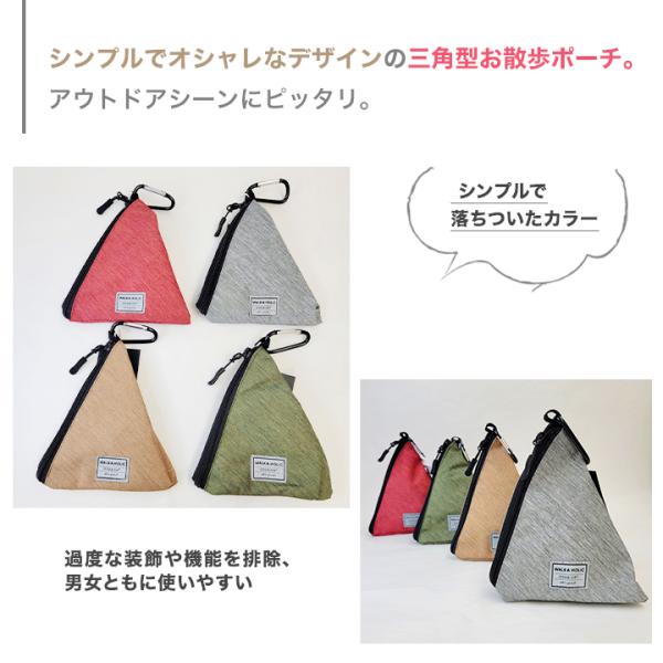 シンプルでオシャレなデザインの三角型お散歩ポーチ