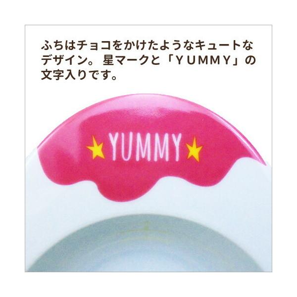 ふちはチョコをかけたようなキュートなデザイン。星マークと「YUMMY」の文字入りです。