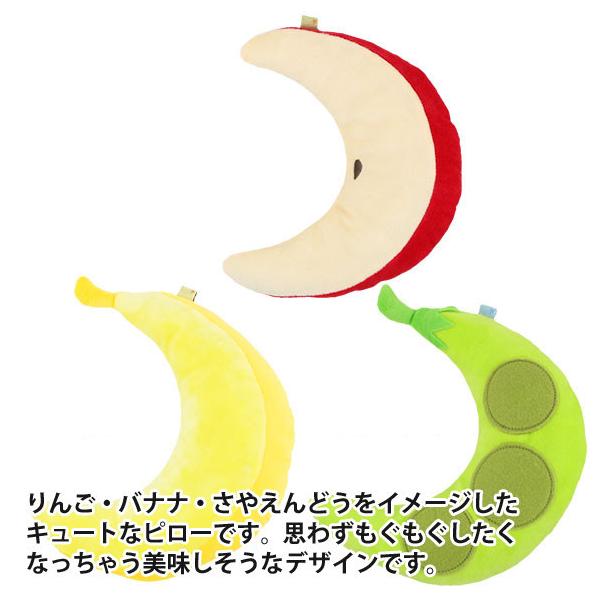 りんご・バナナ・さやえんどうをイメージしたキュートなピローです。