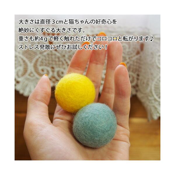 ●また大きさは直径3センチと猫ちゃんの好奇心を絶妙にくすぐる大きさです。(一般的な手芸用のフェルトボールは直径が1.5〜2センチ)