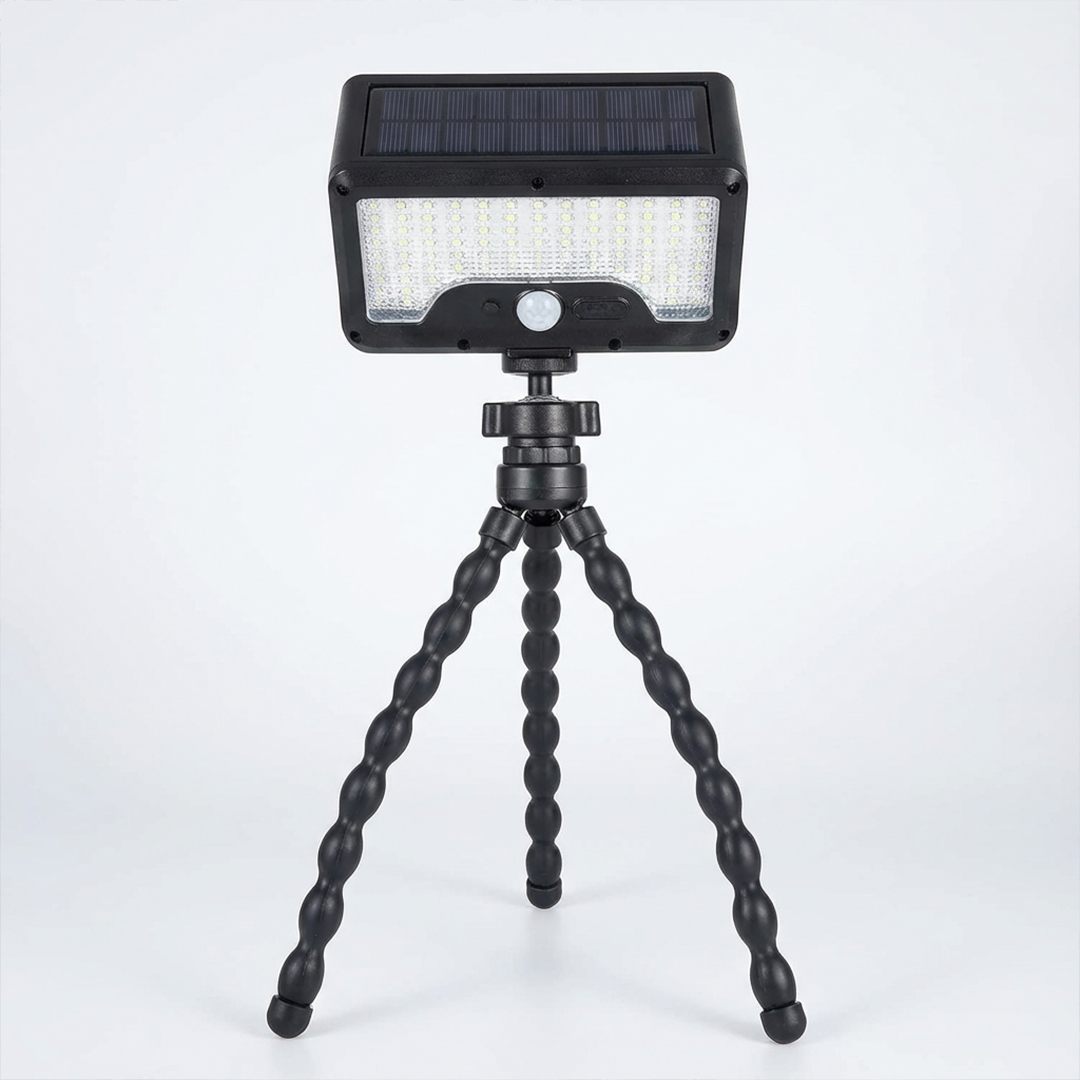 92LED 屋外ソーラーライト IP65防水仕様 フレキシブル三脚と360度回転調整ランプ付属 USB充電対応 人感センサー搭載 600ルーメン高輝度昼白色