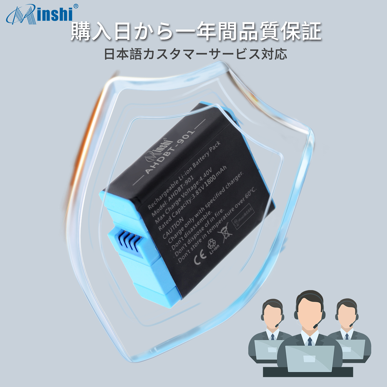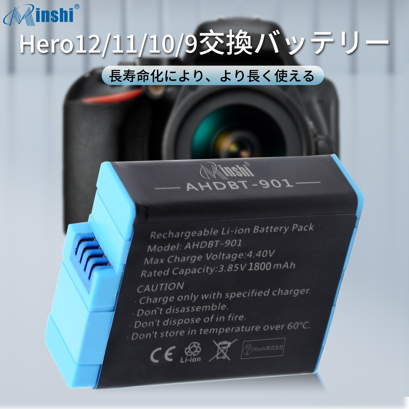 【2個セット】minshi GoPro HERO 10 Black AHDBT-901 対応 互換バッテリー 1800mAh 高品質交換用バッテリー
