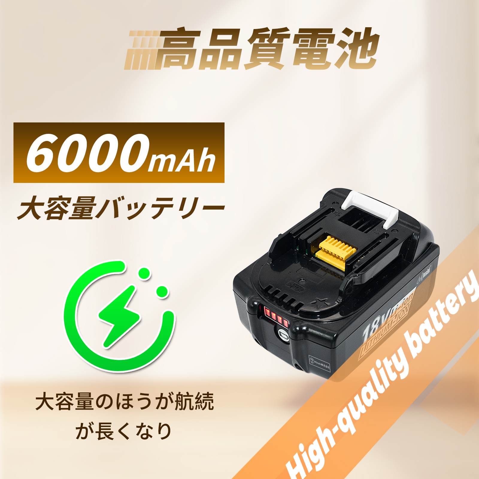 6ヶ月保証、高品質な互換バッテリー!