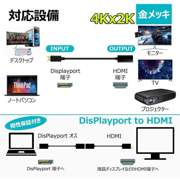 DisplayPortポートからHDMIポートまで変換アダプタ、DisplayPortパソコンからテレビ、モニターなどプロジェクターなどHDMI設備を接続して、大きな画面を楽しむ。ご注意※双方向の信号転送できない、HDMIからDisplayPortへの変換は対応しておりません。DisplayPortからHDMIポートへ変換のみです