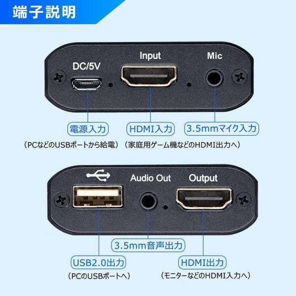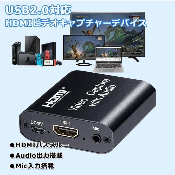 HDMI キャプチャーボード HDMIパススルー出力 3.5mm音声出力 MIC音声入力搭載 USB2.0 1080P 30Hz ゲームキャプチ