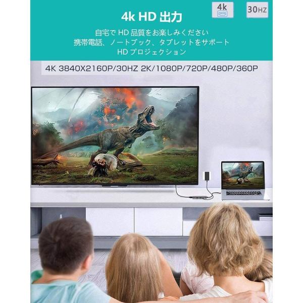 【4KHDMIビデオ出力】USBCHDMIアダプタで4KUHD或は1080Pの映像をHDTV、デイスプレイやプロジェクターに出力できます。アダプタミラーリングとMACブック、Chromeブック、または他の標準USB-Cインターフェースを使用し、パソコン本体に供給し、HDMIと同じスクリーン効果を実現できます。
