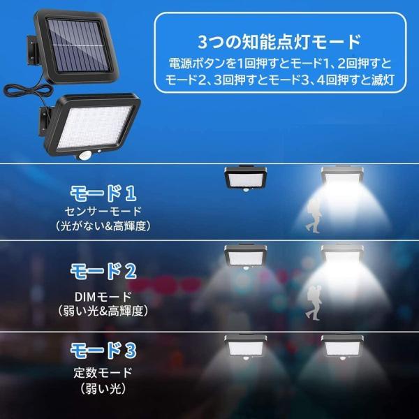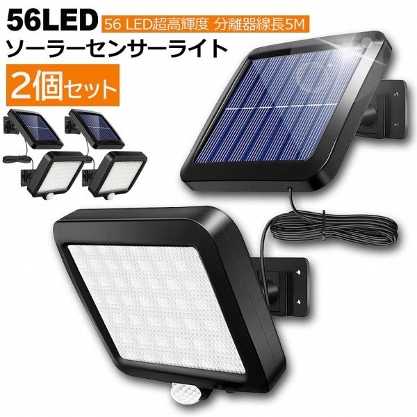 センサーライト 2個セット56LED 屋外 ソーラーライト 3モード 超高輝度 ソーラーライトモーションディテクター 5Mケーブル付き 防水 防