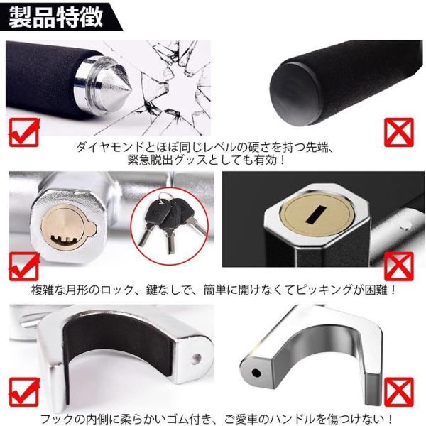 【サイズ】全体44cm-68cmロック部分:32cm重量1.5kgハンドルに合わせて長さを調節できるのでほとんどの車でご使用いただけます。軽自動車、乗用車、トラックなど車種をこだわらずに取付可能です。