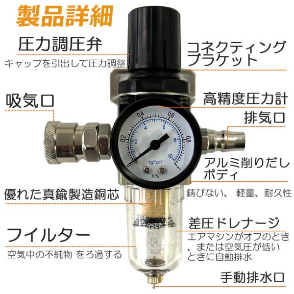 エアー レギュレーター ウォーターセパレーター エアーレギュレーター エアーツール 圧力計 エアツール 減圧弁 エアブラシ 圧力調整 ホコリ除去