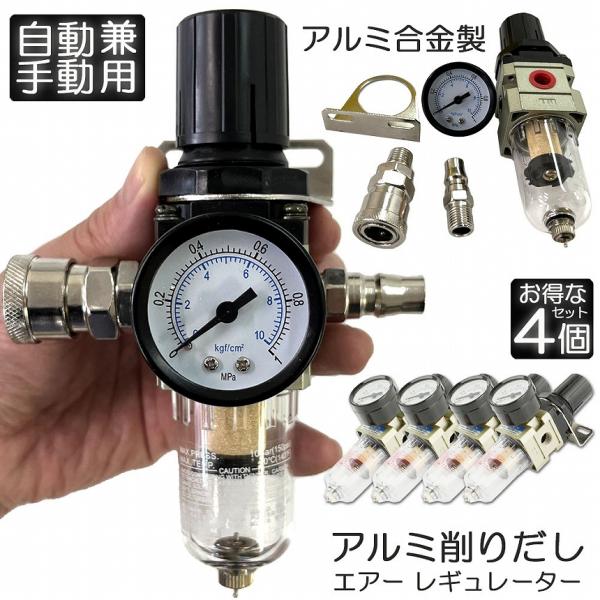 エアー レギュレーター ウォーターセパレーター 4個セット エアーレギュレーター エアーツール 圧力計 エアツール 減圧弁 エアブラシ 圧力調整