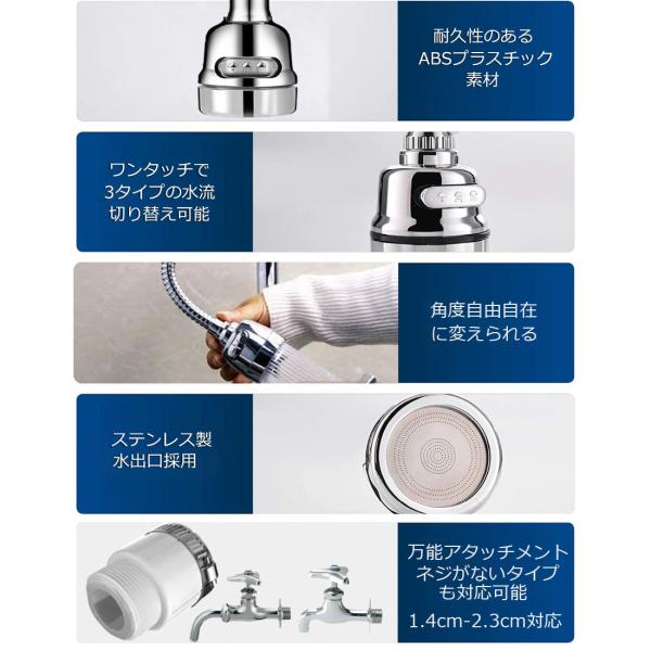 爆買 蛇口 シャワー 蛇口交換 キッチンシャワーヘッド 節水 ノズル 首振り 3つモード 台所 流し 水道 冷温 ABS樹脂 ペットシャンプー