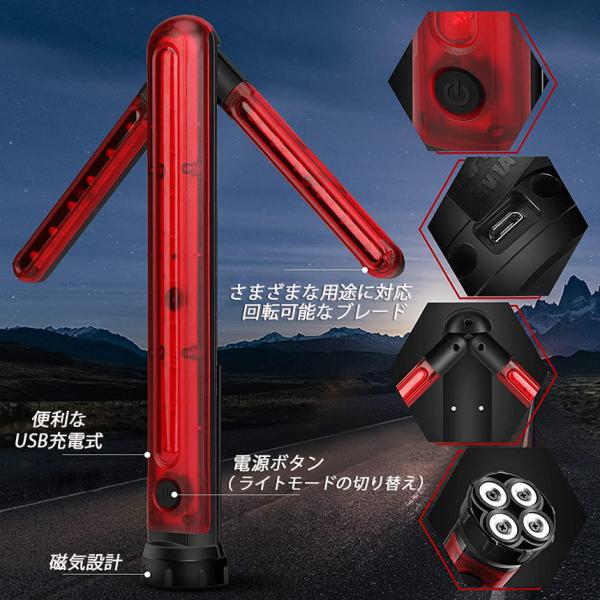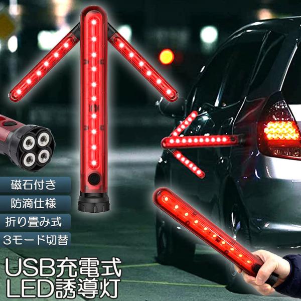 誘導棒 誘導灯 合図灯 矢印ライト USB充電式 点灯 点滅 3点灯モード 交通整理 駐車場 軽量 赤色灯 取り外し可能マグネット付き 警棒 安
