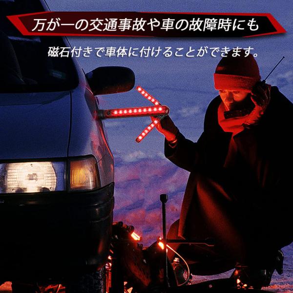 【多用途多用途】ブレードを開いて回して固定すれば、矢印型の誘導灯として、ブレードを折りたたんで誘導棒としてご使用いただけます。
