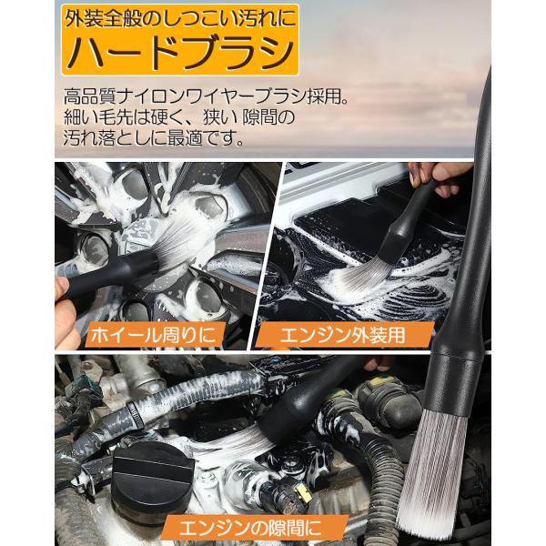 【使いやすい3種類セット】ディテールブラシは硬さの異なる3本セットで様々なシーンでお使いいただけます。車内の掃除だけでなく、車体、ホイール、掃除が難しい隙間の掃除にも使用できます。