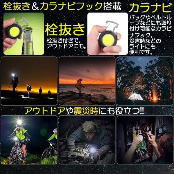 【ミニサイズ】ミニCOB投光器の重さはわずか45gです。 キーホルダーのデザイン採用、外出時バッグ掛けまたキーを持ち運びして、ポーチに入れたり便利に持ち歩けます。
