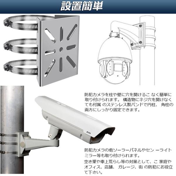 防犯カメラ ポール 取付金具 4個セット カメラ ブラケット スタンド ステンレス製 ハウジング 穴開け ビス止め 不要 監視カメラ ダミー ハ