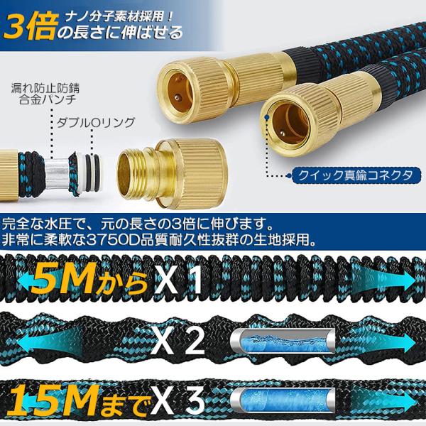 伸縮ホース 散水ホース 伸びるホース 洗車ホース 3倍に伸び