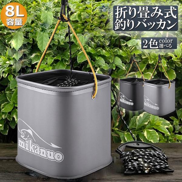 釣り バケツ バッカン 水汲み みずくみバケツ 釣り 折りたたみ バケツ 8L 魚が逃げない ロープ EVA 海釣り 生かしバケツ 釣り 水くみ