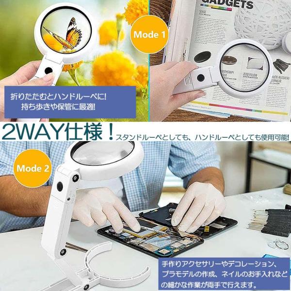虫眼鏡 拡大鏡 デスクライト スタンド ルーペ LED ルーペ ライト付き ルーペ付き ハンドライト 電気スタンド LEDライト 目に優しい