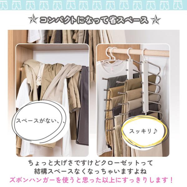 ズボンハンガー ハンガー スラックスハンガー 6連 省スペース ステンレス 軽量 収納 スラックス ズボン ネクタイ スカート ベルト すべり止