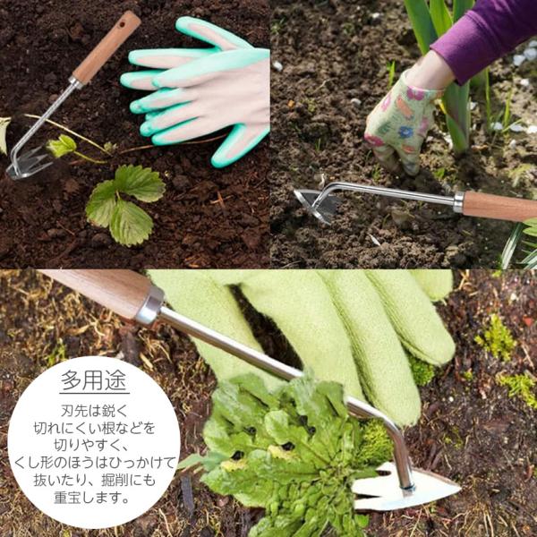 3本爪と先の鋭利な刃との2in1で、深めの雑草や根を切ったりしつつ、引っこ抜く作業もとてもしやすく、使いやすいです。除草作業がいつもより楽に、はかどります。草取りや土掘り、大きすぎないのでガーデニングにも。農作業、園芸ガーデニング補助具として最適です。