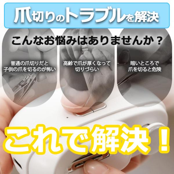 電動爪切り 爪切り 電動つめ削り 爪磨き 足の爪 つめきり 角質ケア ネイルケア 爪やすり ライト付き 巻き爪 厚い爪 爪ケア USB充電式 ワ