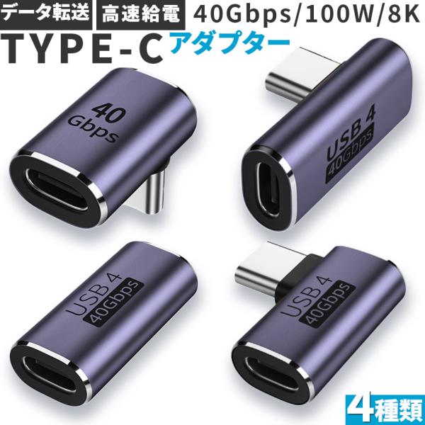 爆買 USB4.0 Type C アダプター 4種類 ストレート L字 L型 延長 接続 オス メス USB-C PD 100W/5A 急速充電