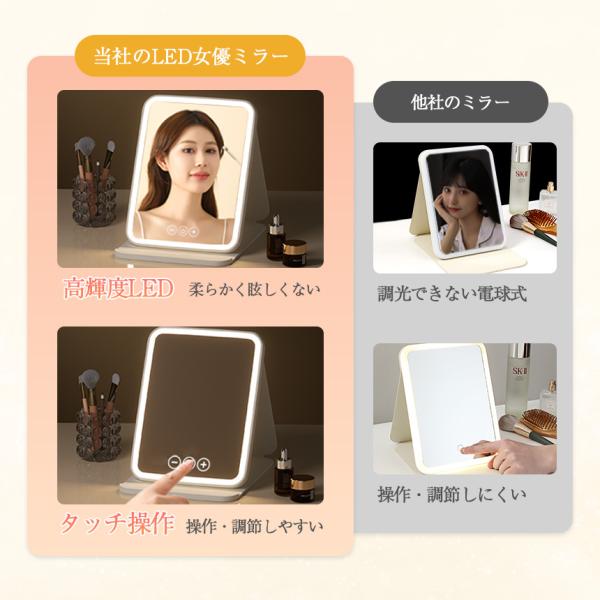 女優ミラー 日光女優ミラー 卓上ミラー 化粧鏡 卓上 鏡 ライトミラー LEDミラー メイクミラー ライト付きミラー USBサポート式 携帯型ミ