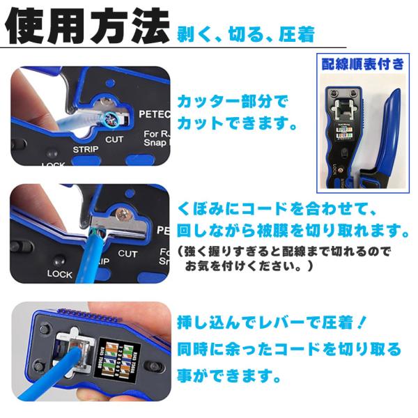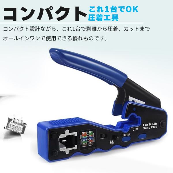 圧着工具 2個セット かしめペンチ LAN ケーブル 製作 RJ45 CAT6A CAT6 CAT5E 対応 被膜カット 圧着 簡単 これ1台