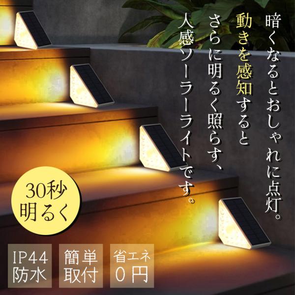 ソーラーライト センサーライト 2個セット 屋外 防水 温光色 おしゃれ デッキライト ガーデンライト ソーラー LED ステップ 庭 装飾ライ