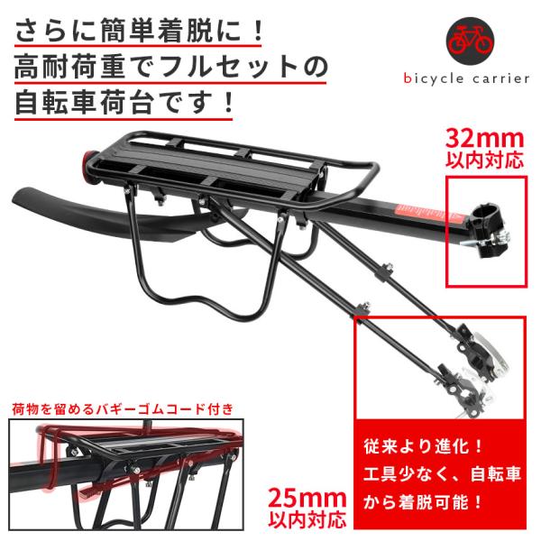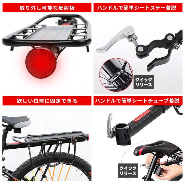 自転車荷台 リアキャリア 自転車 泥除け付き アルミニウム合金 サイクルキャリア ワンタッチ 耐荷重80kg 安定 固定用ゴム紐 反射板 取付工