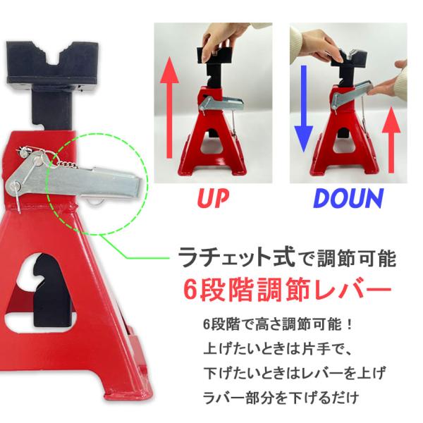 爆買 ジャッキスタンド 2台セット 最低位285mm 最高位435mm 6段階 調節可能 Jack Stand 低床 ラチェット式 プ ジャッキ