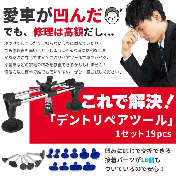 車 へこみ 修理 19点セット 凹み ヘコみ リペアキット デントリペアツール デント修理 修復 直す 工具 引っ張る 吸盤 自動車 簡単 素人
