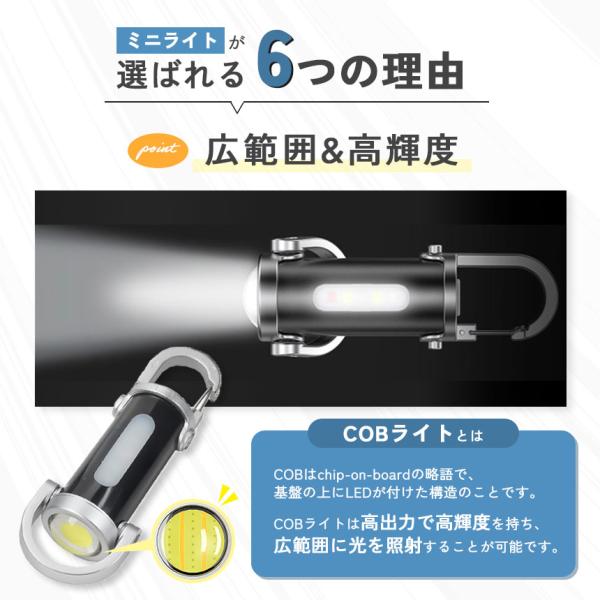 2個セット キーホルダーライト カラビナ付き COB LED ライト ミニライト 携帯ライト 小型 カラビナ キーホルダー 携帯 防災グッ